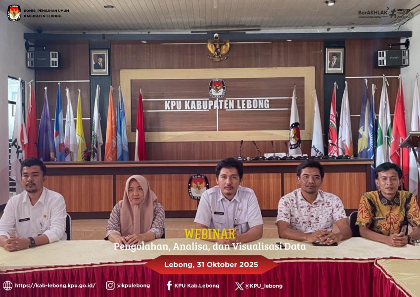Lebong, 3 November 2025 - #Temanpemilih, Jumat (31 Oktober 2025) KPU Kabupaten Lebong mengikuti webinar series yang diselenggarakan oleh KPU RI dengan tema Pengolahan, Analisa, dan VIsualisasi Data. Kegiatan ini dilaksanakan secara daring dan diikuti oleh seluruh satuan kerja seluruh Indonesia.