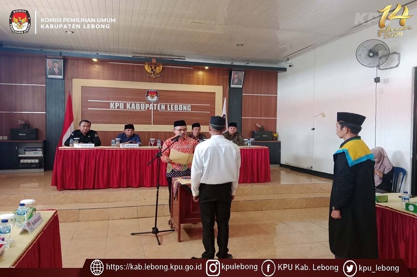 Rabu, 12 Juli 2023 Komisi Pemilihan Umum Kabupaten Lebong melaksanakan Pelantikan Pengganti Antar Waktu (PAW) Anggota Panitia Pemungutan Suara (PPS) Desa Ketenong Jaya, Kecamatan Pinang Belapis, Kabupaten Lebong di Aula KPU Kabupaten Lebong.