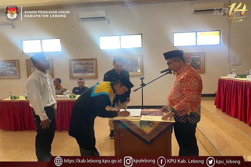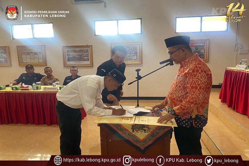 Rangkaian acara pelantikan berjalan khidmat dan lancar, Anggota PPS Desa Ketenong Jaya atas nama Evan Bastian dilantik langsung oleh Ketua KPU Kabupaten Lebong yang selanjutnya di lakukan penandatanganan berita acara pengambilan sumpah/janji dan pakta integritas.