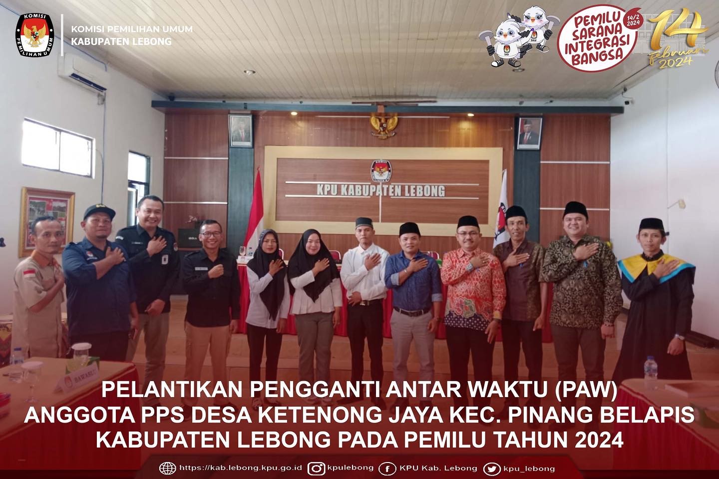 Pelantikan Pengganti Antar Waktu (PAW) Anggota Panitia Pemungutan Suara (PPS) Desa Ketenong Jaya Kecamatan Pinang Belapis Kabupaten Lebong