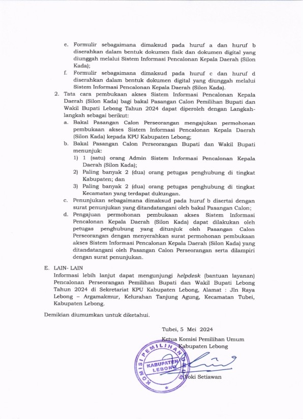 #temanpemilih, berikut disampaikan Pengumuman Penyerahan Dokumen Syarat Dukungan Pasangan Calon Perseorangan Pemilihan Bupati dan Wakil Bupati Kabupaten Lebong Tahun 2024.