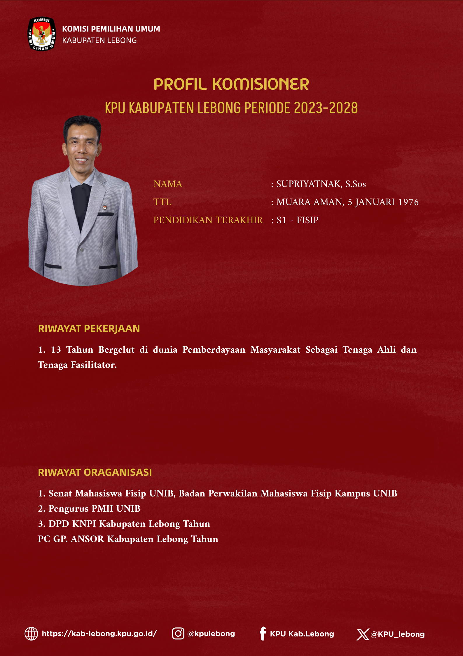 PROFIL ANGGOTA KPU KABUPATEN LEBONG PERIODE 2023-2028